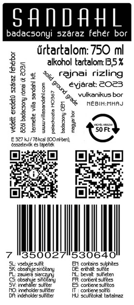 New Hungarian back labelFrom 2023 we have designed a new back label. A new EU regulation was set, that require also wine to be declared for its content. On option was to write it out, as you see on most foodstuff, another was to state a QR-code to an public webadress, the could navigate to the content of the wine. so now there are three different barcodes on the back label