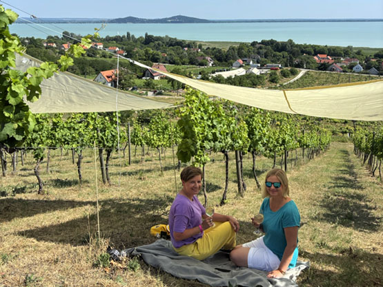 During summer we arrange picknick meetings in the vineyards of our promotion house. Here you can listen to nice music, have something to eat sitting on a nice blanket, and of cource dring Villa Sandahl wines, while looking out on the beautiful Balaton lake.