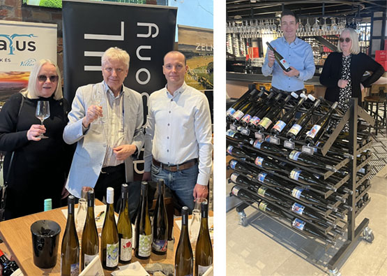 Thanks to a good stock of matured high quality Riesling wine, and successful cooperation with Boret Hungarian Wines, and despite difficult Corona regulations, Villa Sandahl now conquers the European market. Maria Antoinett Crab, the export manager at Boret, enthusiastically points on how overwhelmed and surprised potential customers get when she demonstrate our wines.
